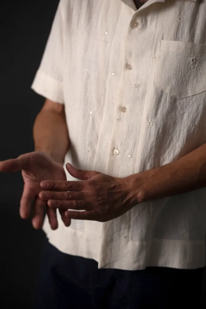 Mit diesem kurzärmeligen, kastenförmigen Hemd, das am besten lässig aus Baumwolle oder Leinen getragen wird, kannst du wie ein Rebell zum Baseballstadion schweben. Inspiriert vom amerikanischen Stil der 50er Jahre. Mit einteiligem Kragen, aufgesetzter Tasche, Rückenpasse, kurzen Ärmeln und kurzen Seitenschlitzen.