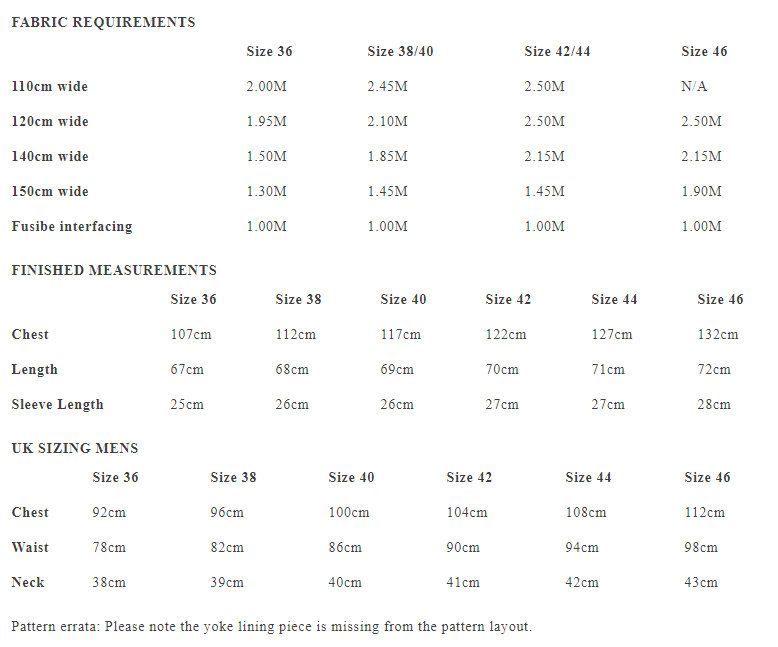 Stoffempfehlungen: Leinen, Leinenmischungen, Tencel, Tencel/Leinen, 4–8 oz Denim, Baumwoll-Chambray, indische Handwebstoffe, feine Wolle oder Cord.