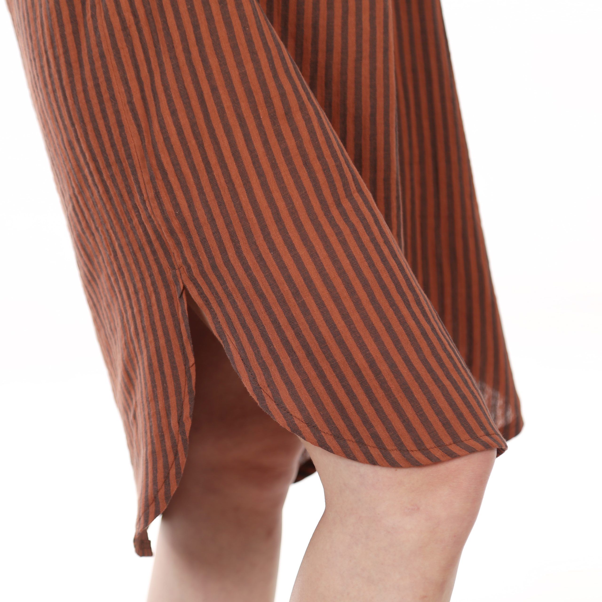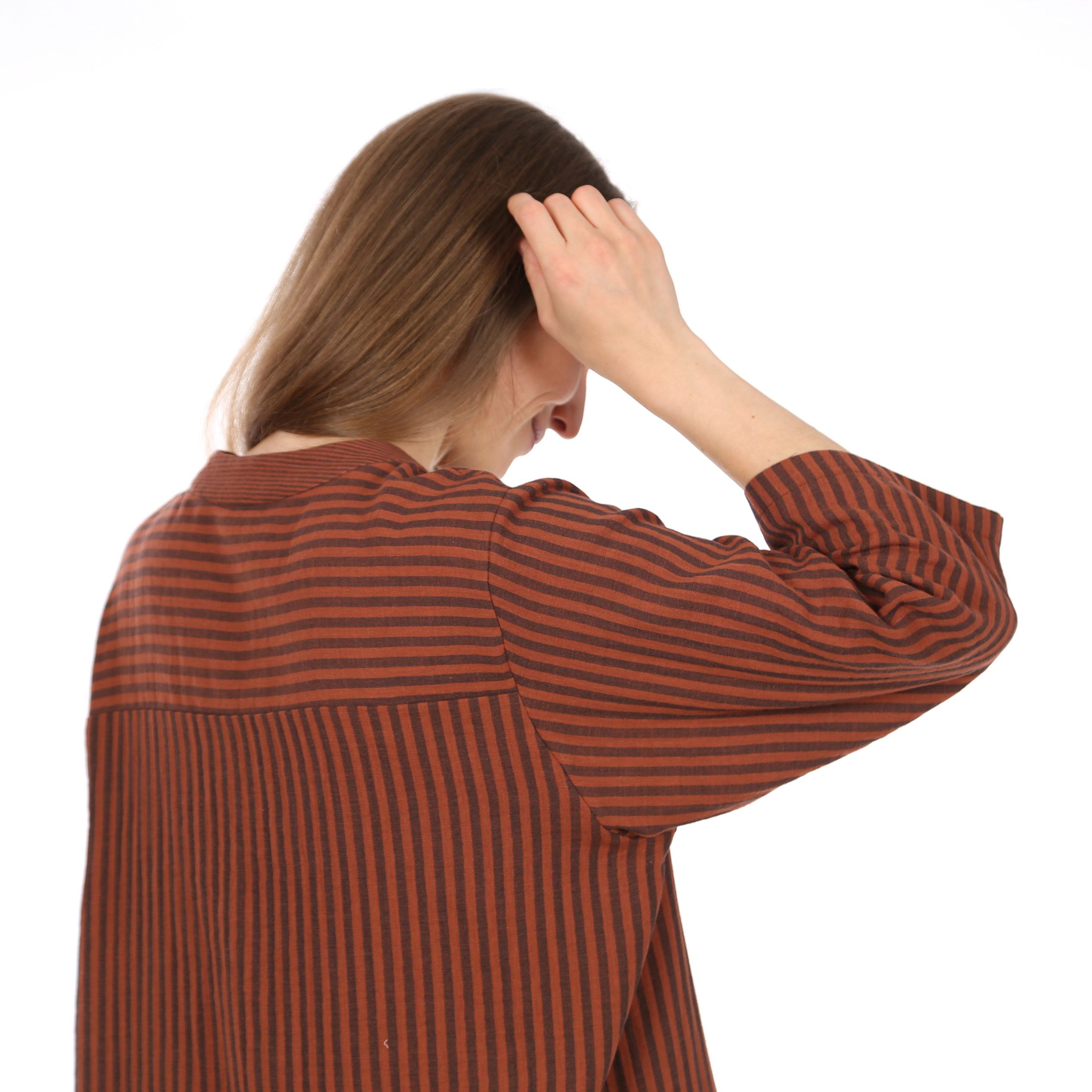 FRAU LUNA – für alle, die auch im Schlaf stilvoll gekleidet sein möchten. Das kniebedeckte Nachthemd besticht durch einen abgerundeten Saum mit Seitenschlitzen. Der V-Ausschnitt mit breiten Blenden und zarter Falte setzt elegante Akzente. Hinten formt eine Passe die Silhouette und eröffnet Platz für Musterspielereien. Zwei Ärmellängen machen es perfekt für jede Jahreszeit