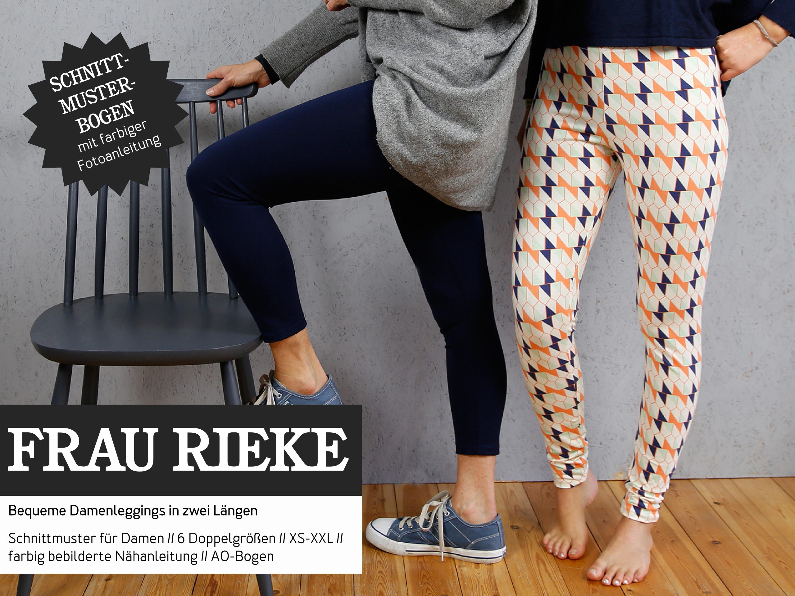 Diese Leggings ist so schnell genäht, dass Du nie wieder den Weg ins Kaufhaus auf Dich nehmen willst. Zudem ist FRAU RIEKE superbequem und für jede Gelegenheit zu haben! Als Schlafanzughose, als Sporthose, als Basicteil unterm Kleid und sogar als Teil einer Faschingsverkleidung hat FRAU RIEKE bereits Einzug in unsere Kleiderschränke gefunden. Wir sind uns sicher, dir fällt dazu auch noch etwas ein. Durch gemusterte Stoffe kannst Du FRAU RIEKE deinen persönlichen Look geben; einfarbig passt sie sich jedem Stil an.