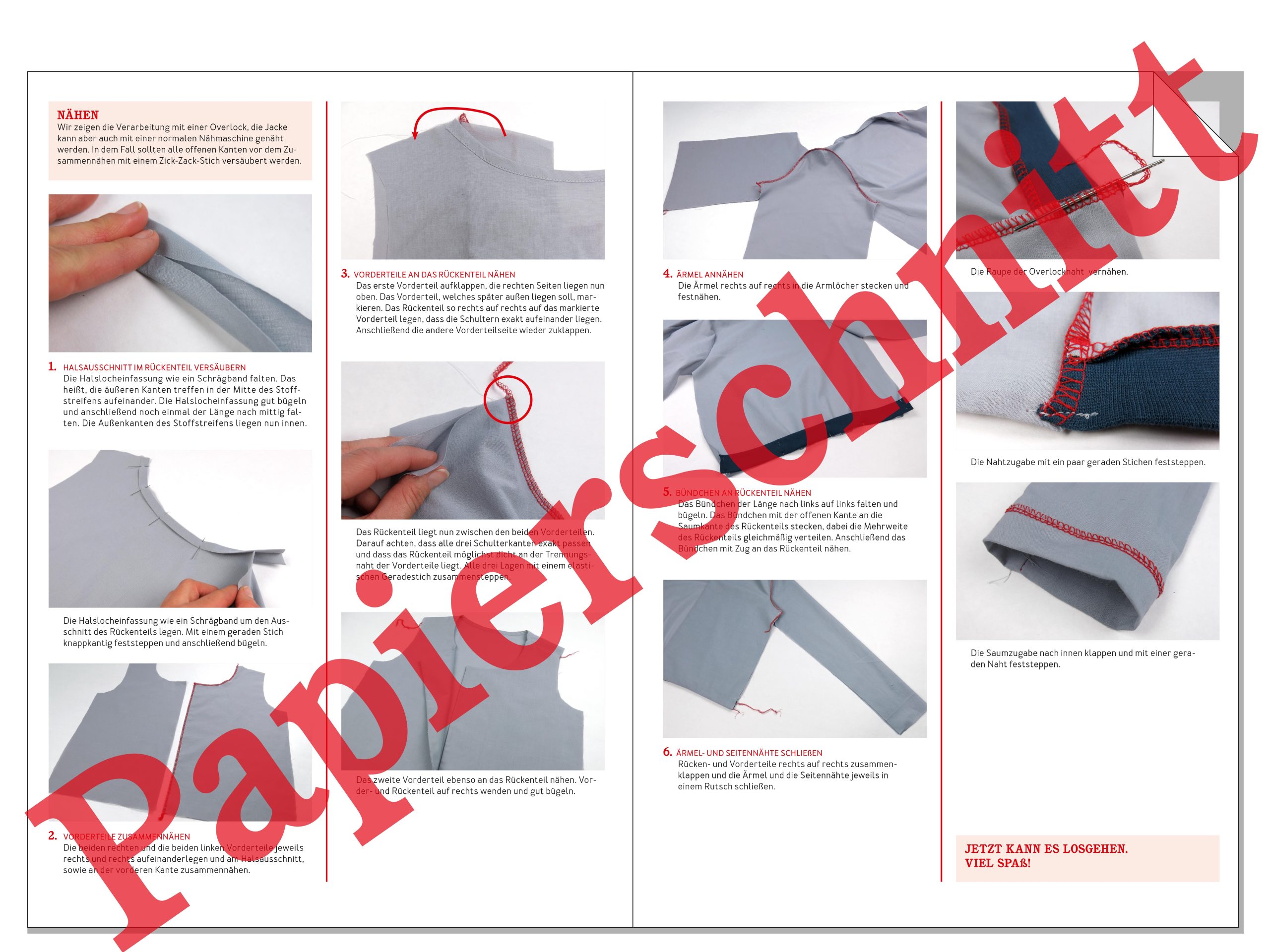 SCHNITTMUSTERBOGEN auf Papier mit farbig gedruckter Fotonähanleitung