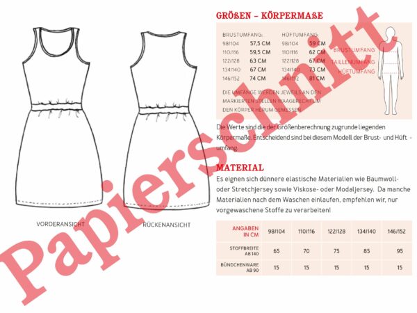 - Materialempfehlung: dünnere elastische Materialien wie Baumwoll- oder Stretchjerseys sowie Viskose- oder Modaljersey